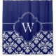 Navy White LG Damask #3 1ICBR Navy Monogram Shower Curtain