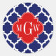 Navy White Moroccan #5 Red 3 Initial Monogram Classic Round Sticker