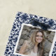 Display seven favorite photos or vacation memories on this chic navy and white beach towel, featuring a gridded layout and square photos. Perfect for your Instagram snaps, towel features 7 photo templates as well as your single initial monogram and family name, on a navy blue Mediterranean patterned background.