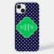 Navy White Polka Dot Emerald Quatrefoil 3 Monogram Case-Mate iPhone Case