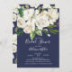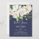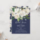 Beautiful bridal shower invitation featuring watercolor white roses set on a midnight blue background