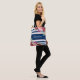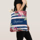 Navy White Stripe Modern Floral Personalised Tote Bag