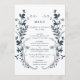 Navy & White Wildflower Silhouette Wreath Wedding Menu