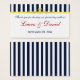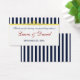 This nautical inspired navy blue and white stripes wedding favour tag has yellow scrolled accents and red and navy lettering that matches the wedding invitation shown below. If there are any other matching items you require, please email your request to niteowlstudio@gmail.com.