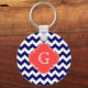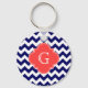 Navy Wht Chevron Zigzag Coral Quatrefoil Monogram Key Ring