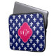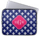 Navy Wht Fleur de Lis Raspberry 3 Initial Monogram Laptop Sleeve