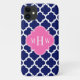 Navy Wht Moroccan #5 Hot Pink 3 Initial Monogram Case-Mate iPhone Case