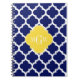 Navy Wht Moroccan #5 Pineapple 3 Initial Monogram Notebook