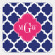 Navy Wht Moroccan #5 Raspberry 3 Initial Monogram Square Sticker