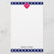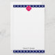 Navy Wht Moroccan #5 Raspberry 3 Initial Monogram Stationery