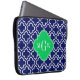 Navy Wht Moroccan #6 Emerald 3 Initial Monogram Laptop Sleeve