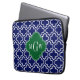 Navy Wht Moroccan #6 Forest Grn 3 Initial Monogram Laptop Sleeve
