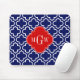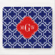 Navy Wht Moroccan #6 Red 3 Initial Monogram Mouse Mat