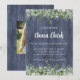 Celebrate your graduate's incredible milestone with this elegant graduation invitation featuring eucalyptus greenery and white florals on a stunning navy wood background. Honour their accomplishments with a beautifully designed announcement that sets the perfect tone for their celebration.
