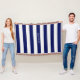 Navy Wt Horizontal Preppy Stripe #2 Name Monogram Throw Blanket
