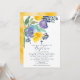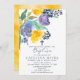 Bright watercolor colourful floral blooms in canary yellow, purple plum and navy hues adorn the side of this cheerful yet elegant baptism invitation.