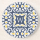 Add Mediterranean flair to your table with our sandstone coasters in a traditional navy blue and yellow Spanish tile pattern. Personalise with your single initial monogram in the centre.