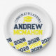 Navy Blue, Yellow & White Personalised Graduation Paper Plates - Half Repeating Congratulations