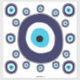Patterned sticker of traditional navy blue, turquoise and white protective evil eye circle symbols