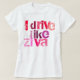 Light Tshirt with"I drive like Ziva" in shades of pink and purple