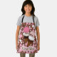 An allover background print of round dots in the colours of Neapolitan Ice cream (pinks, whites and browns). At the front centre is 2 digitally stitched ice cream cones along with a digitally created puffy sticker that reads Neapolitan.