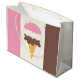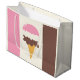 Neapolitan ice cream cone in strawberry, vanilla, and chocolate flavours. Accented with pink, cream, and chocolate Neapolitan vertical stripes on the sides of this custom large gift bag. It's a sweet design for anyone that loves to eat ice cream! Customise it for a birthday or any occasion!