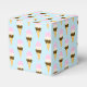 A sweet pattern of triple scoop, Neapolitan ice cream cones on a pastel blue background colour. Each cone has strawberry, vanilla, and chocolate ice cream. A yummy treat for summer fun! Customise it on this party favour box for anyone that loves ice cream. Perfect for a ice cream party, birthday or any occasion!