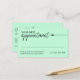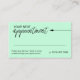 Minimalist appointment card in mint green with black text and an elegant arrow. Add your contact information to the back of the practical your next appointment card.