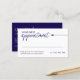 Minimalist appointment card in white with dark blue text and an elegant arrow. Add your contact information to the back of the practical your next appointment card in white fonts against a navy blue background. Chic appointment card with a clean arrow and navy blue accent colour.