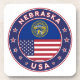 Badge of Nebraska with flag of Nebraska and flag of USA colors, rounded shape.