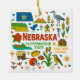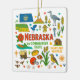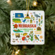 Commemorate your trip to the state of Nebraska with this modern keepsake Christmas ornament, featuring hand-drawn style illustrations of iconic food, animals, landmarks, landscapes, and culture. Personalise the back to mark your US adventure and create a memory you'll hang up on the tree for the Holidays year after year.