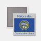 An authentic premium quality image of the flag of Nebraska set between the state name and nickname over a flag-colour background.