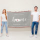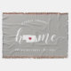 Show some home state pride with this cute rustic grey throw blanket featuring "home" in white calligraphy script lettering with a silhouette map of the state of Nebraska standing in for the letter "O." A red heart illustration inside the state map completes the design; you can change the position of the heart to your home city by opening the design tool and dragging the heart shape to your favourite spot. Personalise with your home city, family name and year established to create a perfect and memorable housewarming gift or addition to your new home.
