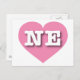 This postcard features a vibrant pink heart containing the bold, white, upper case letters NE, the official abbreviation of Nebraska, the cornhusker state. The reverse side of the postcard is blank, awaiting your customised text or handwritten sentiments.