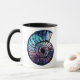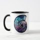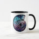 Mug in a spiral, nautilus sea shell patterned with a blue and violet nebula with stars
