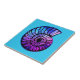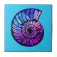 Ceramic tile in a spiral, nautilus sea shell patterned with a blue and violet nebula with stars