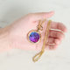 The watch has a gold chain that gives it an elegant and sophisticated touch. The image on the face is of a cityscape with tall buildings and a tower. The colors are predominantly purple and blue, creating a striking contrast to the gold of the watch. The watch is a unique and exclusive accessory, which combines the beauty of art with the functionality of time. This watch is ideal for people who want to show off a distinguished and original style.