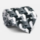 A tie with a striking, abstract design in grey, black and white from a screenprint by Judy Adamson.