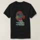 I give wanted to give this a 4 instead of a 5 because these Basic DARK T0shirts run unexpectedly SLIM or Narrow. Which is great if you do not have a potbelly, but I have a paunch. It isn't the shirt's fault that I've got a beer belly. The design and shirt itself is a quality cotton shirt. The color is more of a deep purple, but still a very pretty color. The Basic DARK T-shirts run a bit SLIMMER than the Basic Ts. The neck is a fraction narrower (or seems to be narrower) also. I'm a paunchy middle-aged woman and my neck is 12 inches (31cm) thick and the neckline fell about the same as in the photo of the man, and I had the desire to tug it a bit. So if you're a thick necked man or like loose shirts, be aware these are slimmer shirts. Once I get rid of my lockdown paunch it'll look great. The shirt washed well in cold water with no apparent bleeding. We don't have a dryer, so it hung dry. Did not shrink. Love the colors and the design. The design looks smaller on my shirt than it does on the model on-line. But still, it looks good on the shirt. The printing looks as it does on the model, just the size seems fractionally smaller. Washed garment in cold water, hung dry and design appeared unaffected.