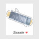 A grey spool of thread with a needle jabbed in it.
