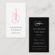 Elegant vertical business cards for seamstresses, fashion designers, stylists, tailors and more feature a sewing needle and thread in vibrant pink with two lines of custom text beneath in crisp black. Customise the back with your full contact details in white lettering on a black background, beneath a matching sewing needle illustration.