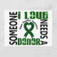 Put on your green to support the loved one in your life waiting for an Organ Donor while advocating Organ Donation awareness with Someone I Love Needs A Donor t-shirts, gifts, and apparel featuring a green Organ Donation awareness ribbon centred within an eye-catching square pattern of bold text.
