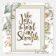 Inspirational quote scripture sticker depicts a rustic garden floral watercolor design with white flowers, eucalyptus and blue leaves. It features an encouraging Bible Verse Nehemiah 8:10, "The joy of the lord is my strength." _