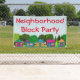 Wonderful tree-lined street adorns this banner. Perfect for your neighbourhood parties. Wording can be changed as needed. Outdoor material with grommets for attaching. Reusable year after year.