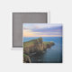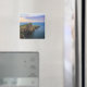 Souvenir photo magnet of a landscape with the iconic Neist Point Lighthouse, built on the cliffs at the western coast of the island of Skye, one of the Hebrides in Scotland, at sunset.