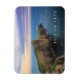 Rectangular photo magnet with a landscape with the iconic Neist Point Lighthouse, built on the cliffs at the western coast of the island of Skye, one of the Hebrides in Scotland, at sunset with the text "Isle of Skye, Scotland".