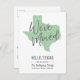 Moving to the great state of Texas? Make sure all your friends know how to find you at your new address with these snazzy moving announcements! Handwritten script across the state shape and a mix of fonts below.
