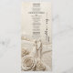 Elevate your reception tablescape with this elegant monochromatic design featuring a romantic couple amidst rolling hills, rendered in warm ivory tones.This design showcases a highly detailed, monochromatic illustration that mimics the look of a classical bas-relief sculpture. A bride and groom are depicted holding hands on a cobblestone path, framed by large blooming roses in the foreground and rolling hills in the distance. The color palette utilizes sophisticated shades of cream, beige, and off-white to create a warm, neutral aesthetic. Typography is arranged in a formal hierarchy, pairing classic serif fonts for the main courses with a vertical, handwritten script for accent text.