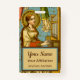 In this detail from a splendid NeoGothic Swiss devotional print, St. Cecilia of Rome (3rd century) is depicted playing an upright pipe organ against an aqua background patterned with gold dots and stars. Her long auburn hair hangs loose and tumbles over her shoulders and down her back. She wears a mediaeval-style, cream-coloured gown lined in green over a dark red-orange kirtle. The gown has a square neckline and bell sleeves. + Despite her private vow of virginity, St. Cecilia was forced into an arranged marriage with a pagan named Valerian. During the festivities, it is said, St. Cecilia “sang in her heart to the Lord” instead of revelling; hence, her patronage of musicians (especially organists) and singers The marriage was never consummated. The long and the short of it is that her new husband, having seen an apparition of the angel that guarded his wife’s virtue, converted to Christianity and respected her vow. + Epilog: St. Cecilia, her husband St. Valerian, and her brother-in-law St. Tiburtius were all martyred. But, that’s a story for another day! + Feast: November 22 + Image Credit (BNG 02): Detail of an antique NeoGothic image of St. Cecilia, originally published in chromolithography by Benziger & Co., Einsiedeln, Switzerland, late 19th-early 20th century, from the designer’s private collection of religious ephemera.