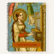 In this detail from a splendid NeoGothic Swiss devotional print, St. Cecilia of Rome (3rd century) is depicted playing an upright pipe organ against an aqua background patterned with gold dots and stars. Her long auburn hair hangs loose and tumbles over her shoulders and down her back. She wears a mediaeval-style, cream-coloured gown lined in green over a dark red-orange kirtle. The gown has a square neckline and bell sleeves. + Despite her private vow of virginity, St. Cecilia was forced into an arranged marriage with a pagan named Valerian. During the festivities, it is said, St. Cecilia “sang in her heart to the Lord” instead of revelling; hence, her patronage of musicians (especially organists) and singers The marriage was never consummated. The long and the short of it is that her new husband, having seen an apparition of the angel that guarded his wife’s virtue, converted to Christianity and respected her vow. + Epilog: St. Cecilia, her husband St. Valerian, and her brother-in-law St. Tiburtius were all martyred. But, that’s a story for another day! + Feast: November 22 + Image Credit (BNG 02): Detail of an antique NeoGothic image of St. Cecilia, originally published in chromolithography by Benziger & Co., Einsiedeln, Switzerland, late 19th-early 20th century, from the designer’s private collection of religious ephemera.